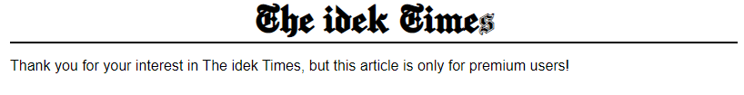 die('Thank you for your interest in The idek Times, but this article is only for premium users!'); // TODO: implement subscriptions