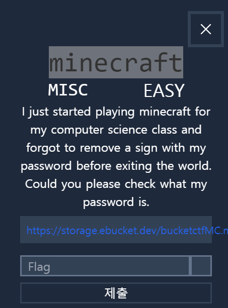 bucketctfMC.mcworld 파일을 다운로드 받는다.