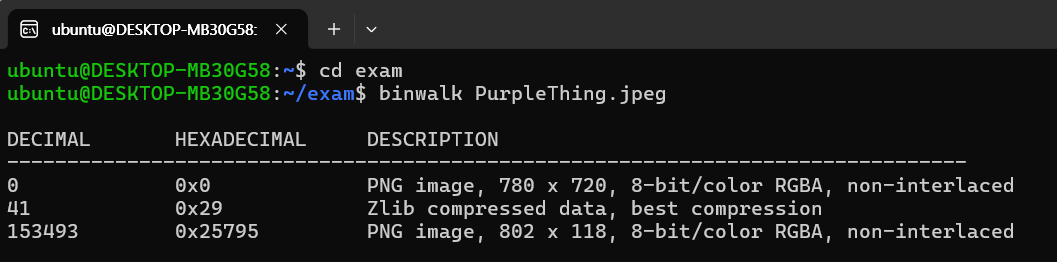 binwalk로 확인했을 때, PNG 파일이 두개가 보입니다.
