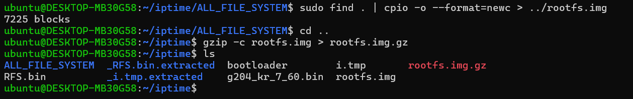 생성된 rootfs.img 파일을 gzip으로 압축하여 rootfs.img.gz라는 파일로 저장한다.