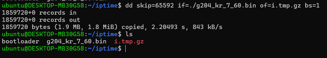 3) dd skip=65592 if=./g204_kr_7_60.bin of=i.tmp.gz bs=1