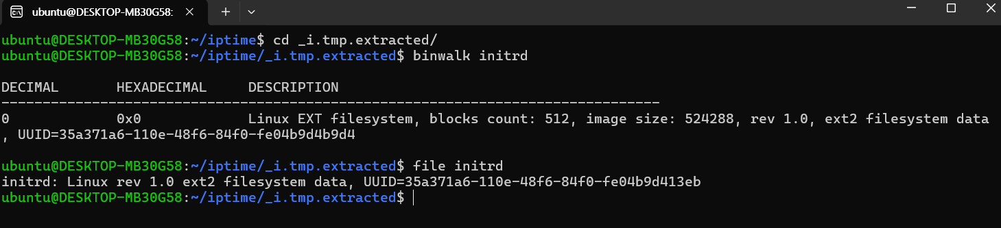 initrd(initial ramdisk)는 Linux 커널 부팅 과정에서 사용되는 초기 RAM 디스크이다. 커널과 통신하거나 루트파일 준비하는 기능들을 한다. initrd 파일을 확인했을 때, Linux EXT filesystem이라고 한다. 마운트해서 더 자세히 확인하자.
