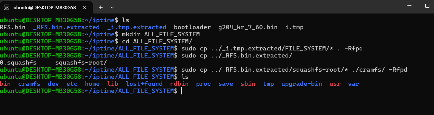 sudo cp ../_i.tmp.extracted/FILE_SYSTEM/* . -Rfpd