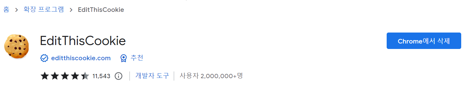 문제를 해결하기 위해 EditThisCookie를 크롬에서 다운로드하면 된다. 쿠키 값을 변경할 때 자주 사용되므로