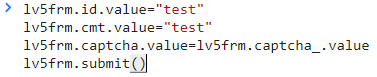 id, cmt에 "test"를 넣고, 캡처 변수에 비교값을 넣고 제출하는 코드를 넣었다.
