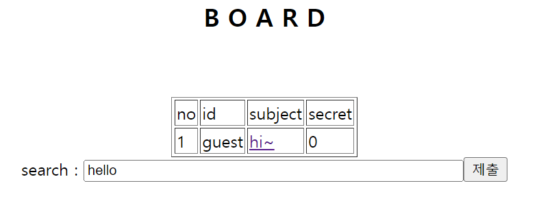 다른 게시판 문제를 풀 때는 search에서 안에 내용을 기반으로 검색을 했다. 따라서 안에 내용이 포함되면 검색 결과에 나왔고, 불일치하면 나오지 않았다. 그래서 검색을 돌려보니 hi했을 때는 admin만 결과로 나왔고, hello를 했을 때, guest가 나왔다.